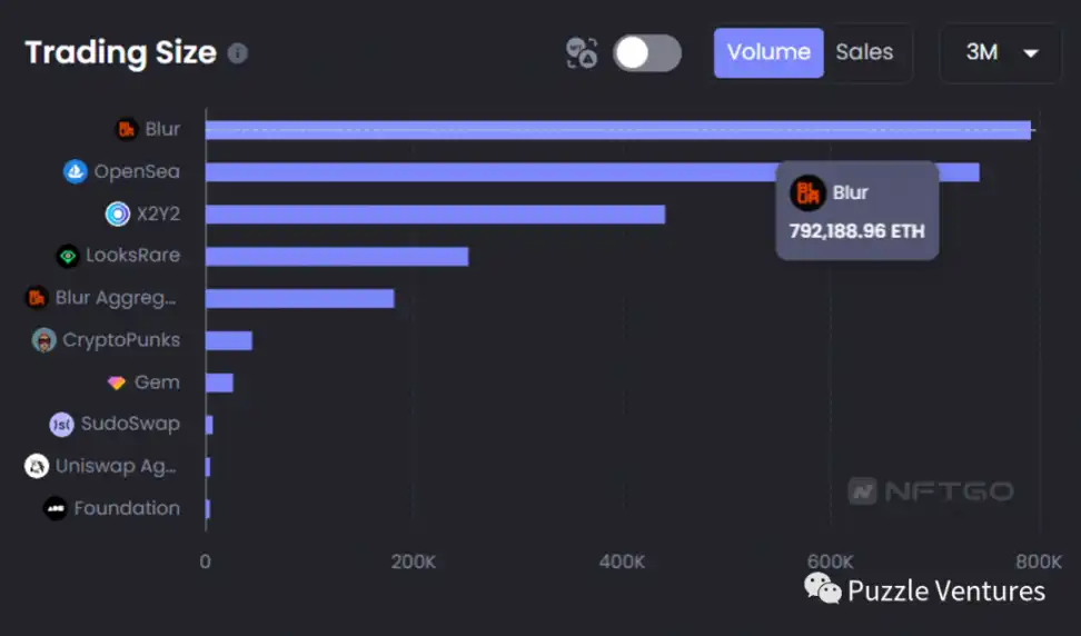 If you look at the NFT transaction market traffic ranking for the last 3 months, it's not hard to see that Blur has surpassed OpenSea in total transaction volume, and almost all of the NFT projects have their floors hung on Blur.