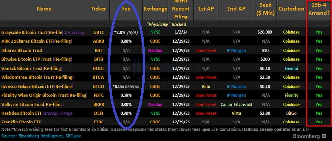 WisdomTree has submitted the latest revised S-1 document for its Bitcoin ETF, designating Jane Street Capital as the Authorized Participant for its Bitcoin ETF. Invesco Galaxy has designated JP Morgan and Virtu Americas as the Authorized Participants for its Bitcoin ETF, with no fees charged for the first 6 months. Fidelity has designated Jane Street as the Authorized Participant for its Bitcoin ETF, with a fee of 0.39%.