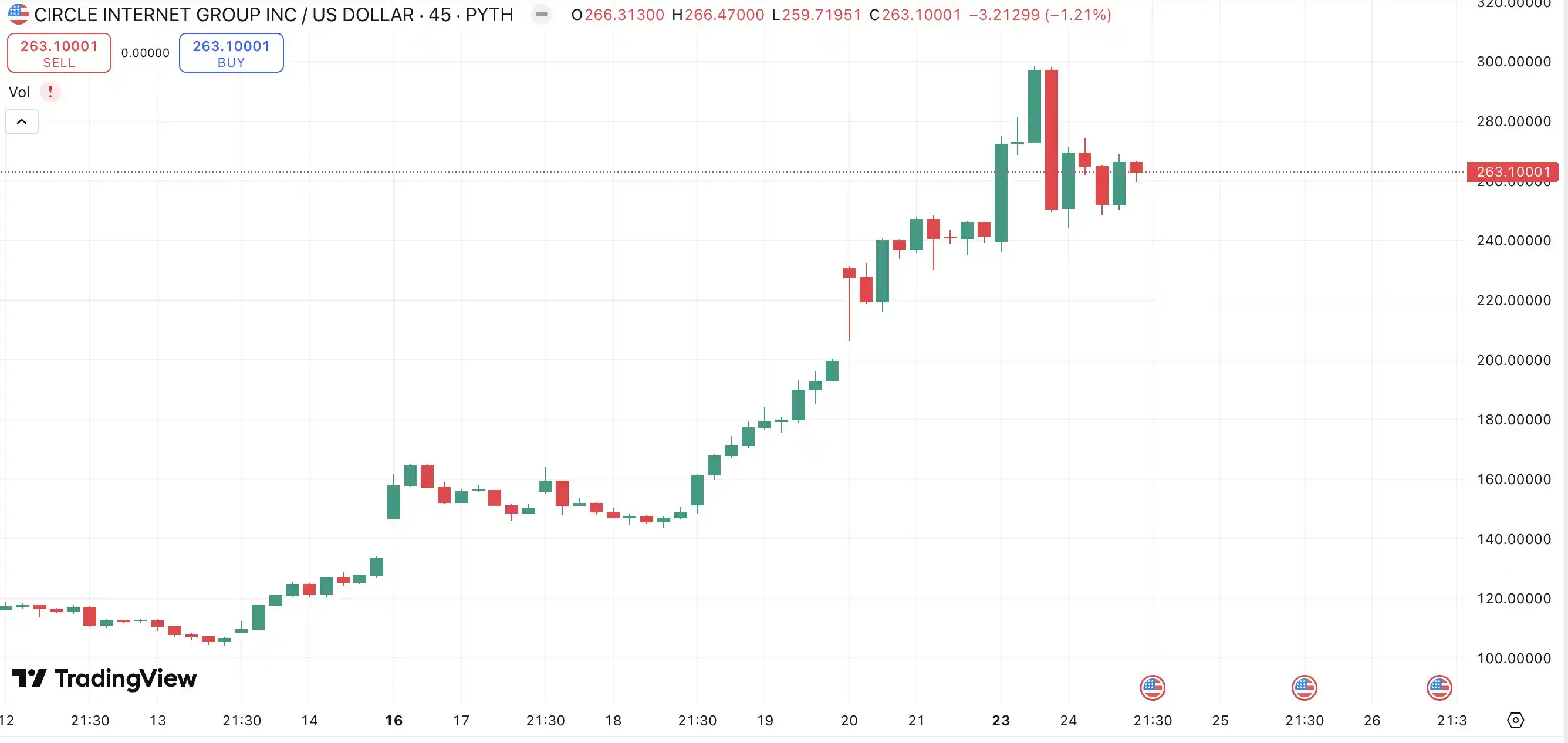Circle is undoubtedly the most fervent representative target in the crypto stock sector since June, with a gain of over 500% since its IPO on June 5.