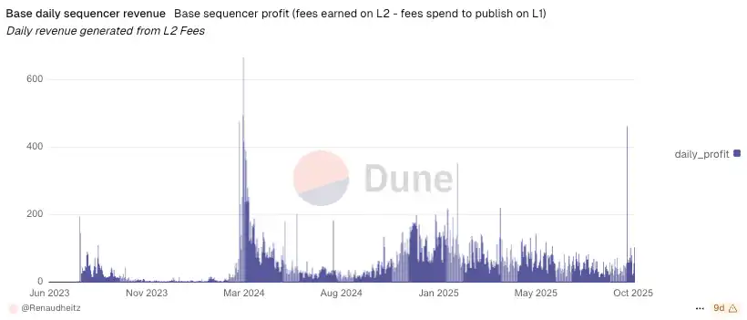 How does this money come about? As an Optimistic Rollup, Base requires each transaction to be sequenced by a single sequencer for on-chain bundling. While the fees are low (average of $0.01 per transaction), the scale is staggering—daily transaction volume has exceeded 5 million transactions multiple times, doubling that of the mainnet. The Sequencer model has made fee revenue a strong cash flow source.