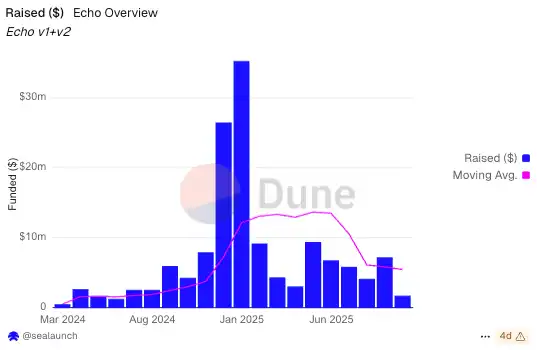 Echo Fundraising Volume Trend Chart | Source: Dune