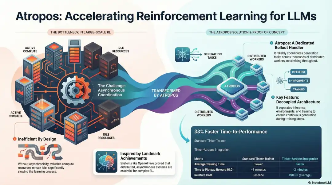 Atropos is the true hub of the Nous RL system. It encapsulates prompts, tool calls, code execution, and multi-round interactions into a standardized RL environment that can directly validate the correctness of outputs, providing deterministic reward signals to replace expensive and unscalable human labeling. More importantly, in the decentralized training network Psyche, Atropos acts as a "judge" to validate whether nodes genuinely improve policies, supporting auditable Proof-of-Learning and fundamentally addressing the reward trustworthiness issue in distributed RL.