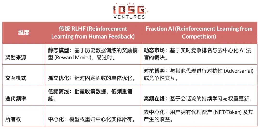 Core Difference between Traditional RLHF and Fraction AI's RLFC: