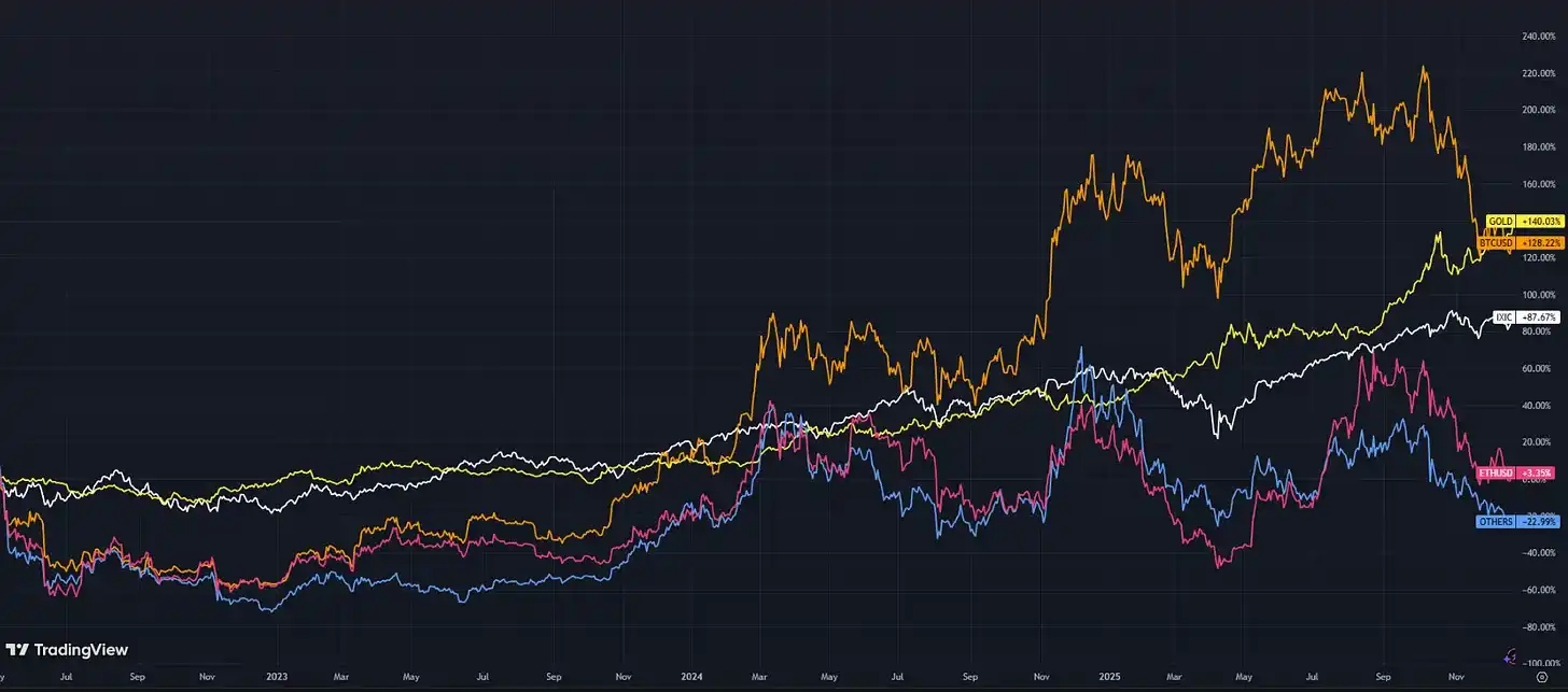 The post-Luna era has seen the most bullish macro, regulatory, and fundamental backdrop in cryptocurrency history. Traditional risk assets and gold have surged, but the long tail assets of the crypto market have not. The reason is structural: the liquidity system that once drove broad asset rotation no longer exists.