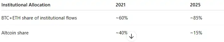 · Institutional compliance departments prohibited tail exposure, sticking to mainstream assets like BTC and ETH.