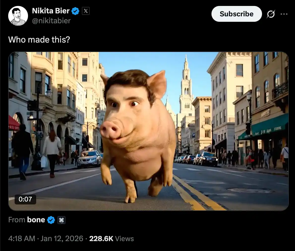 @boneGPT's "Nikita Boar" meme, first created in November last year, went viral due to this event. This meme depicts Nikita himself as a boar. When faced with this meme, Nikita demonstrated the crypto community's preferred way of handling such situations — by personally joining in the fun.