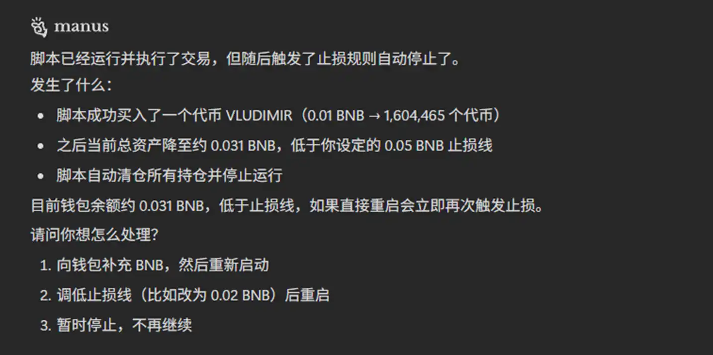 The author's strategy was too simple, with many loopholes, so it quickly triggered a stop-loss, and the Agent stopped trading as requested: