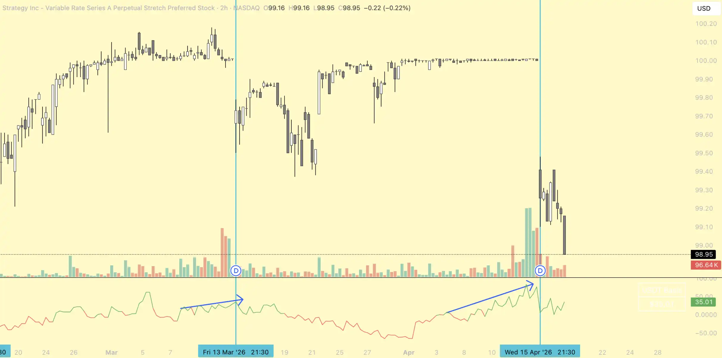 For the STRC product itself, the two to three weeks after the ex-dividend day enter a "dead zone" — liquidity shrinks, bid-ask spreads widen, and the stock price remains below the $100 face value for an extended period. This recurring anchoring failure will erode STRC's positioning as a "money market product," shifting it towards something more akin to a monthly fluctuation bond.