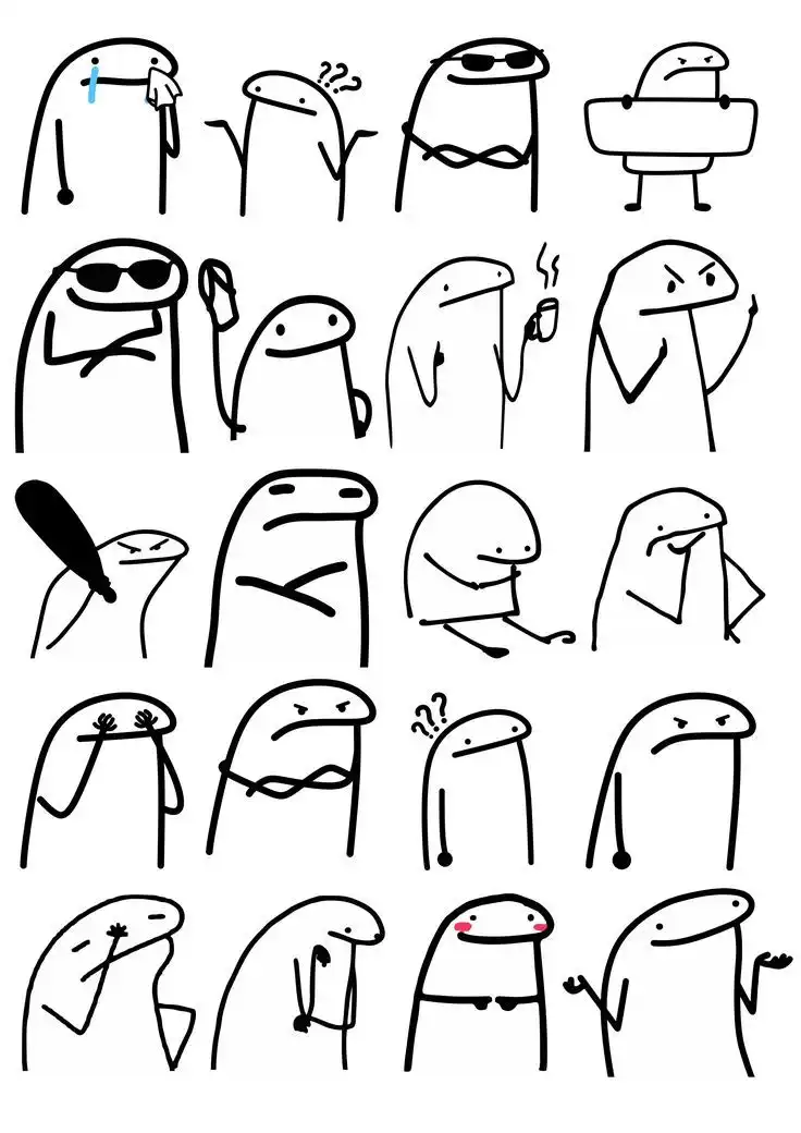 Flork of Cows is a webcomic that has been updated since 2012, created by Brian DiAntonio. The art style is extremely crude, with MS Paint-style abstract stick figures that look like unfinished sock puppets. The expressions and dialogues follow an existentialist daily life mockery route. The "low-cost but highly relatable" quality is similar to early Rage Comics and Trollface, but Flork has lasted longer because its content is universal, and people from any cultural background can recognize themselves in those absurd stick figures. It is particularly popular in Latin America, becoming one of the daily emotional languages of the Spanish-speaking internet.