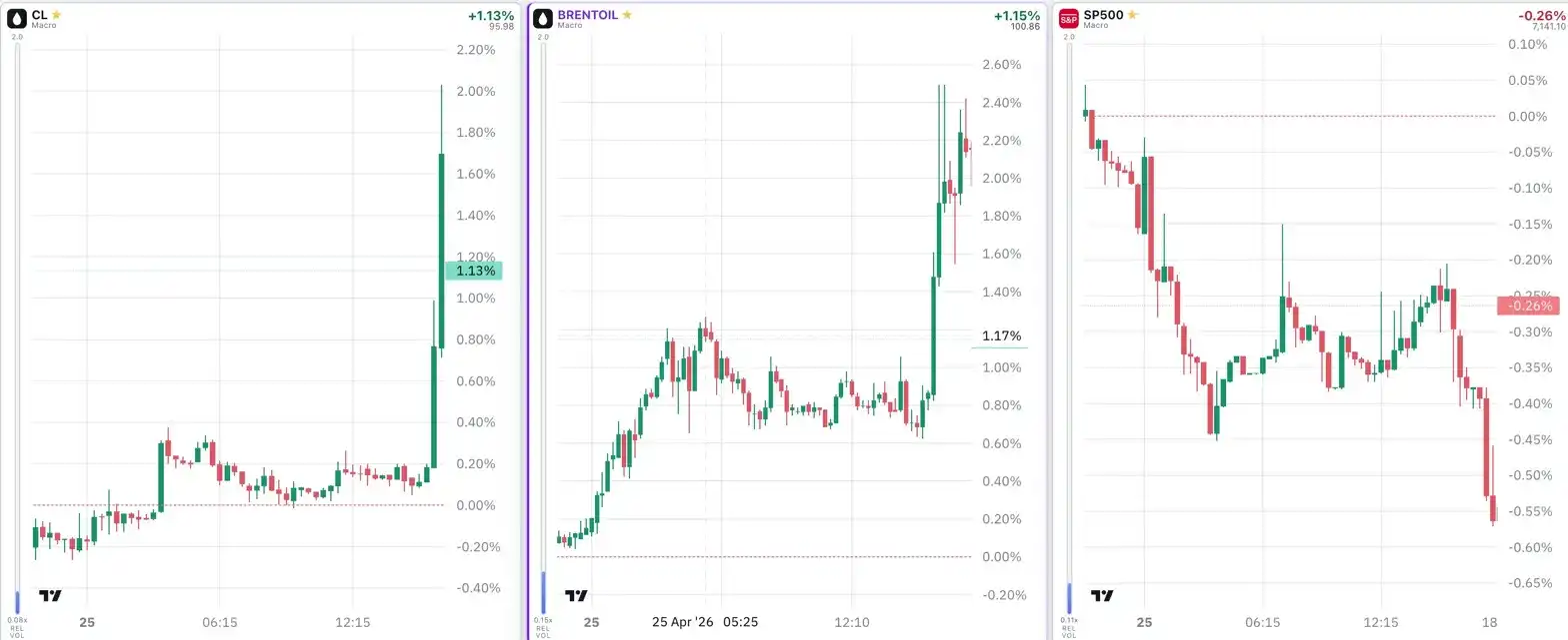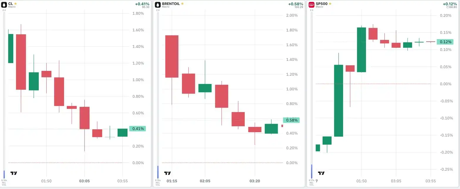 Traders quickly reacted on TradeXYZ, with a sharp 2% increase in oil futures contracts and a 0.55% drop in S&P futures contracts.