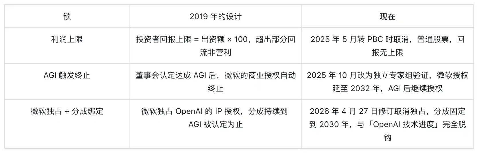 You'll notice one thing. The OpenAI of 2019 was proving to its donors, "Even though we want to make money, there is a limit to how much we will make, and we must stop at a certain point." The OpenAI of April 27, 2026, is proving to its investors, "We have no brakes whatsoever."