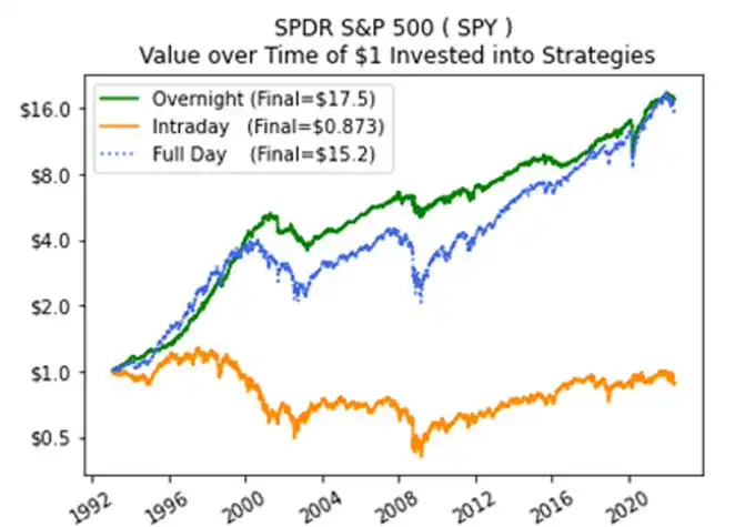 For a long time, the restricted trading hours of the traditional stock market have been a hidden class barrier. Academic research has revealed a startling fact: a disproportionate amount of the long-term returns of the US stock market is generated outside regular trading hours due to the so-called "overnight drift" effect. Earnings reports and major news are deliberately timed to avoid the opening hours, locking retail investors into the nine-to-five window, only to helplessly watch prices gap up at the open — the profit that was supposed to be theirs has long been divided up by institutions with extended hour privileges.