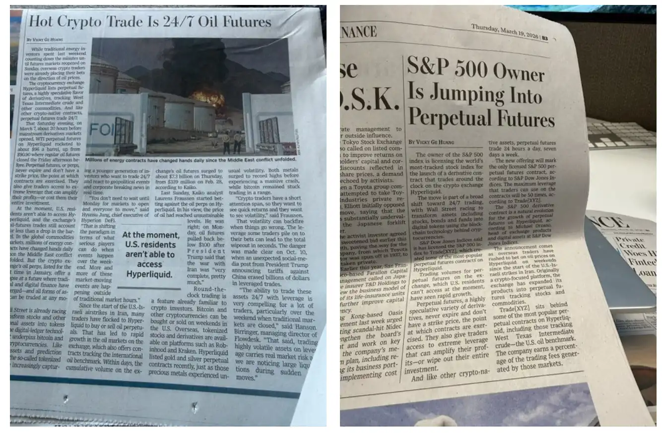 The Wall Street Journal reported twice on Hyperliquid and TradeXYZ